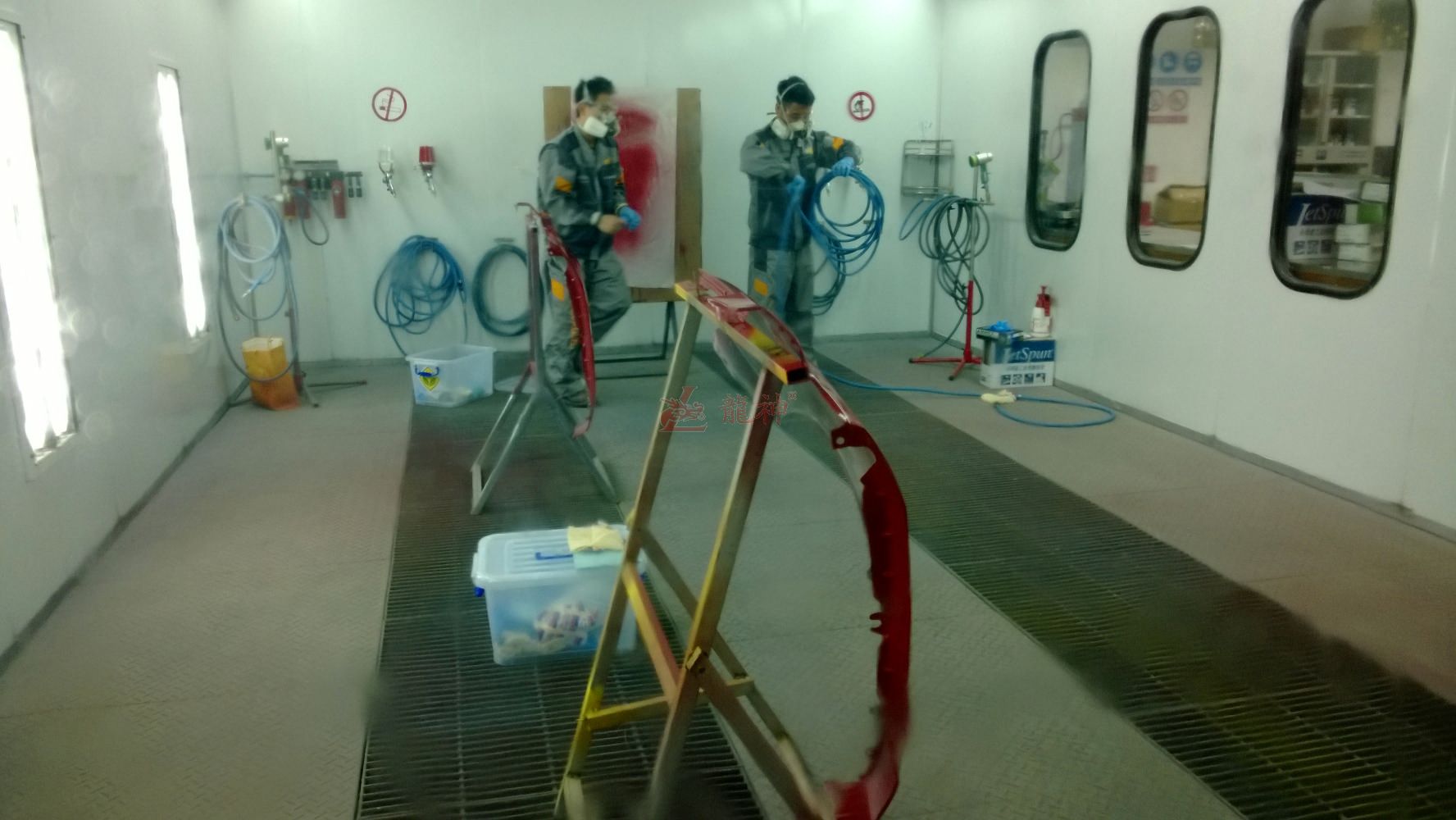 龍神產(chǎn)品鈑金快修系統(tǒng)、壓縮空氣供氣管路系統(tǒng)、噴槍、烤房專用噴漆軟管等設(shè)備為大賽的順利進行提供了有力的保障, 同時龍神培訓師還擔任了本次大賽的噴漆組裁判員。