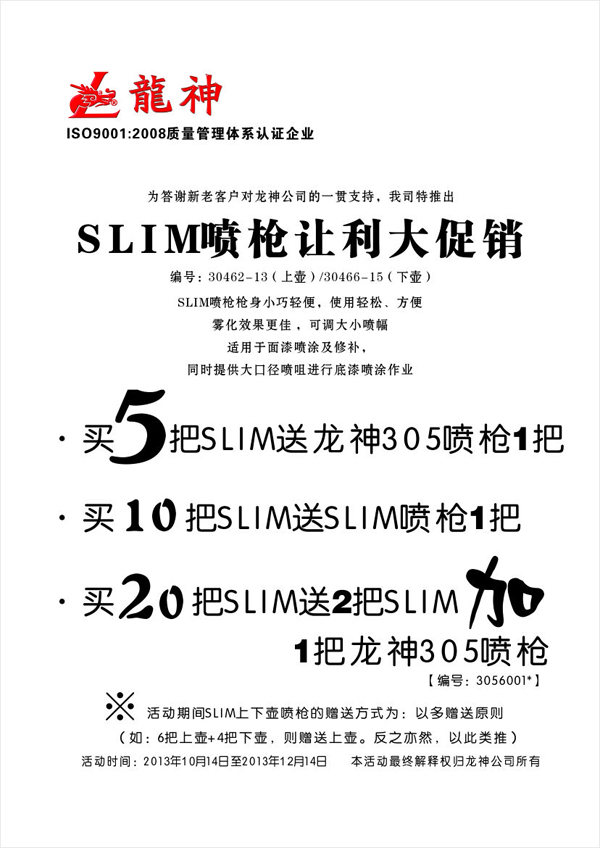SLIM噴槍201310月至12月份促銷方案